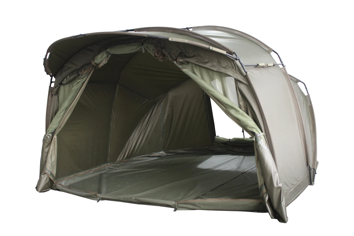 Zo kunnen jij en een vismaatje comfortabel gebruik maken van deze bivvy tijdens jullie vissessies.